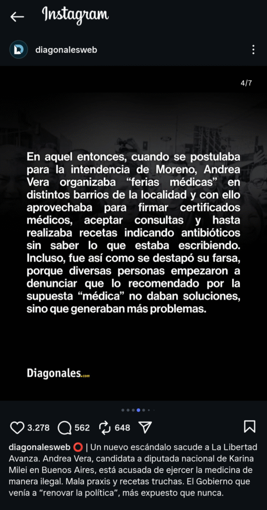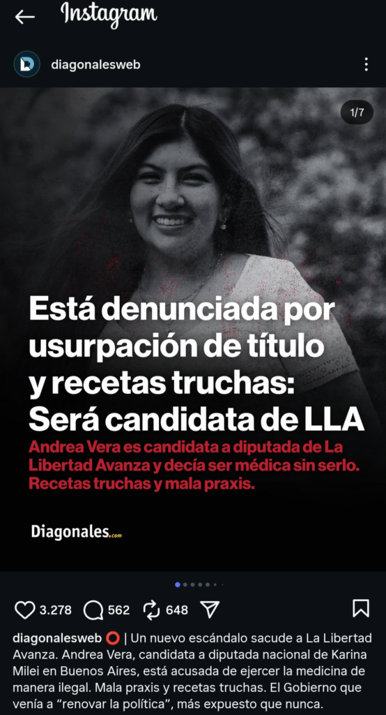 La candidata a diputada nacional por La Libertad Avanza en Buenos Aires, Andrea Vera, fue denunciada por ejercer la medicina sin matrícula habilitante. Vera emitía recetas falsas y realizaba diagnósticos erróneos. El espacio que prometía “renovar la política” acumula denuncias, contradicciones y silencios incómodos.