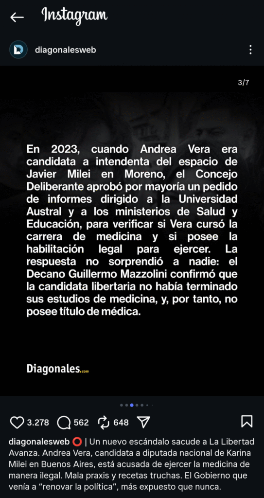 El escándalo se suma a una serie de episodios que ponen en duda la coherencia del discurso libertario. El espacio que se presentó como “la nueva política” acumula denuncias por nepotismo, contrataciones irregulares y ahora, ejercicio ilegal de la medicina. En paralelo, se investiga si Vera recibió fondos públicos.