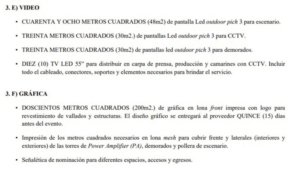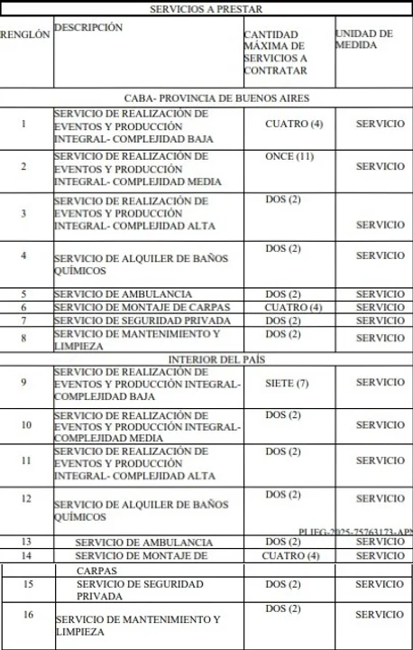 Pero aquí lo más impactante. Al pie de la orden de compra figura un apartado denominado “solicitud de provisión”. Allí aparecen, uno por uno, los eventos que fueron costeados hasta el momento con el presupuesto de $600 millones asignado por Adorni. Casualmente en la contratación anterior estos detalles no eran visibles: en aquella ocasión, contra lo que indica el reglamento, la orden de compra no se hizo pública, y por lo tanto era imposible conocer en qué se gastó el dinero. Esta vez, por lo menos hasta nuevo aviso, el escenario es distinto.