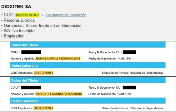 Desde luego, sus actividades nada tienen que ver con temas nucleares. Tampoco la educación de Vázquez, quien presuntamente empezó dos carreras y no terminó ninguna: habría estudiado Historia en la UBA entre 2012 y 2013 y Arquitectura en la Universidad de Morón entre 2021 y 2022. Pese a todo ello, el año pasado fue designado Coordinador de Comunicaciones en Dioxitek de la mano de su colega y en diciembre cobró la jugosa suma de $4.940.002 mensuales. La primicia fue descubierta en exclusiva por Diagonales tras un relevamiento cruzado de la información disponible de ambos empleados.