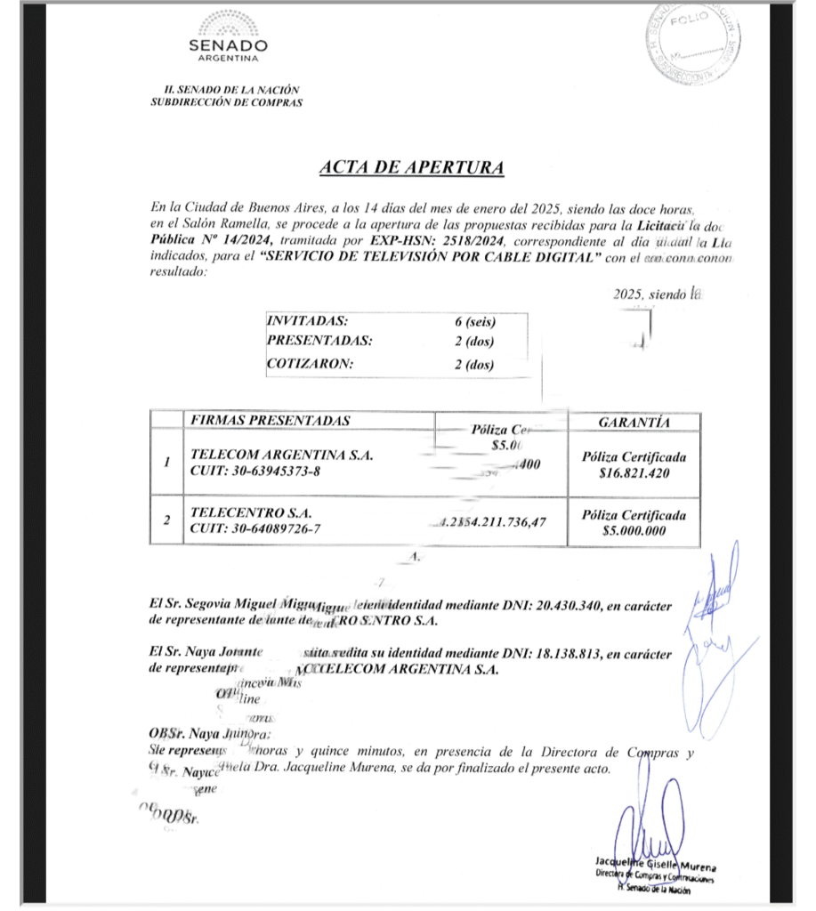 A esto se le suma otra contratación en el mes de marzo para la subdirección de Comunicación Audiovisual -que presta sus actividades al Senado- de “servicio de televisión por cable” e “internet full dedicado” por un costo total de 54.211.736,47. Al igual que el anterior, por un plazo de doce meses, y entre los dos sumarían un gasto de 102.399.531,67 solo en internet y abonos de celular.