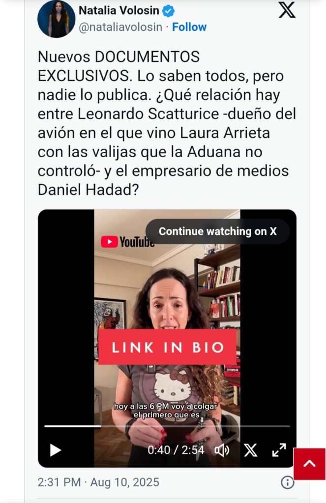 Una investigación realizada por la abogada Natalia Volosin, junto a documentos inéditos, puso en evidencia la relación empresarial que mantienen desde hace más de veinte años Leonardo Scatturice, el lobbista del presidente Javier Milei y dueño de Flybondi, y Daniel Hadad, fundador del grupo Infobae.