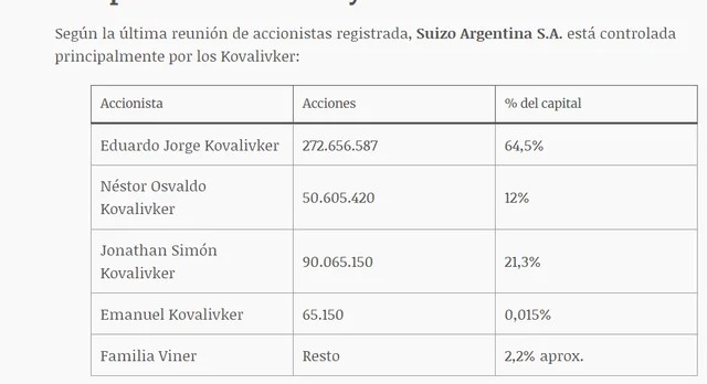 Cuando los hermanos se retiraron de la dirección de la empresa, dejaron sus destinos  en la generación siguiente, más precisamente en el hijo mayor de Eduardo, Jonathan Kovalivker, que tiene el 12% del paquete accionario, idéntico al porcentaje de su tío Néstor Osvaldo y de una familia asociada: Viner.