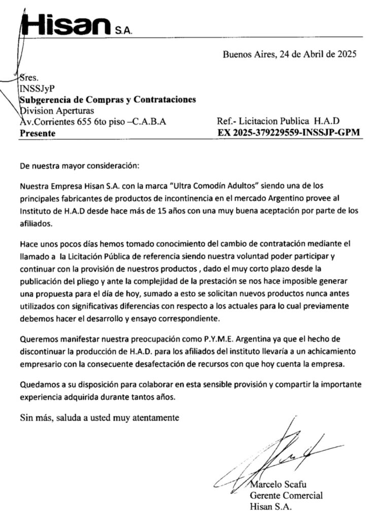 Siguiendo las versiones periodísticas, “de los cuatro oferentes, tres presentaron cartas de queja explicando que no llegaron a cotizar porque les dieron apenas seis días hábiles (el llamado a licitación se hizo el 14/04/2025 y la apertura de sobres el 25/04/2025 con Semana Santa en el medio) para armar la propuesta”.
