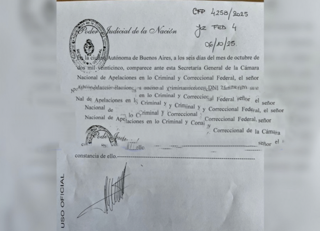 El denunciante compareció personalmente ante la Secretaría General del fuero federal, donde ratificó sus dichos y dejó constancia de sus datos personales, según el acta que ya fue ingresada al sistema judicial “para uso oficial”.